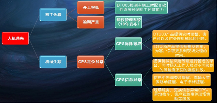 保證壽命四年的優(yōu)質(zhì)終端,適應(yīng)工程機(jī)械惡劣工作環(huán)境;保證不會(huì)丟車的管理方案,天天監(jiān)控、處理風(fēng)險(xiǎn);建立覆蓋全國的三級(jí)服務(wù)體系,保證方案落地。